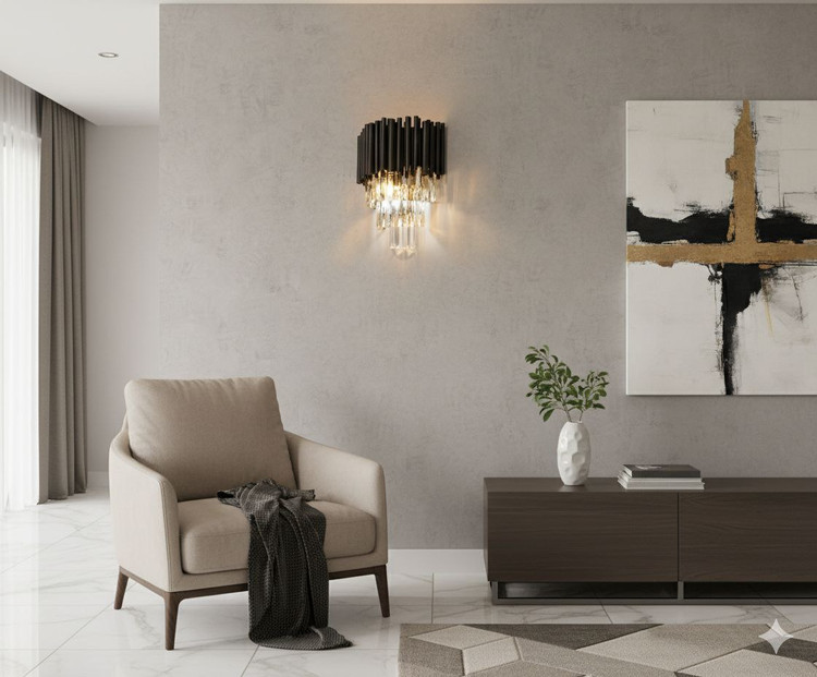 لوستردیواری کریستالی طرح نلا انتخابی خاص برای افرادی است که به دکوراسیون متفاوت و چشم نواز علاقه دارند این لوستردیواری طراحی خاص و الهام گرفته از ساختار کریستال در کنار سبک گرم و صمیمی کلاسیک جلوه ای منحصر به فرد به فضای داخلی می بخشد .