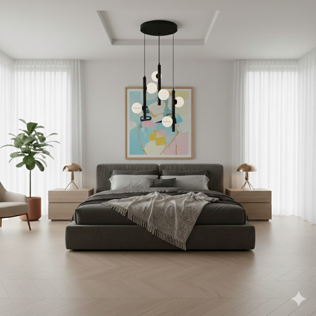 بدنه ی مقاوم - کیفیت ساخت بالا و قابلیت هماهنگی با انواع سبک های دکوراسیون مدرن-مینیمال و صنعتی از ویژگی های بر جسته این لوستر آویز مدرن است .