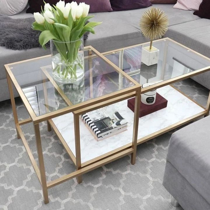 میز عسلی فلزی دست ساز مدرن مناسب برای پذیرایی و دکوراسیون منزل با کیفیت بالا با رویه شیشه کد M-149